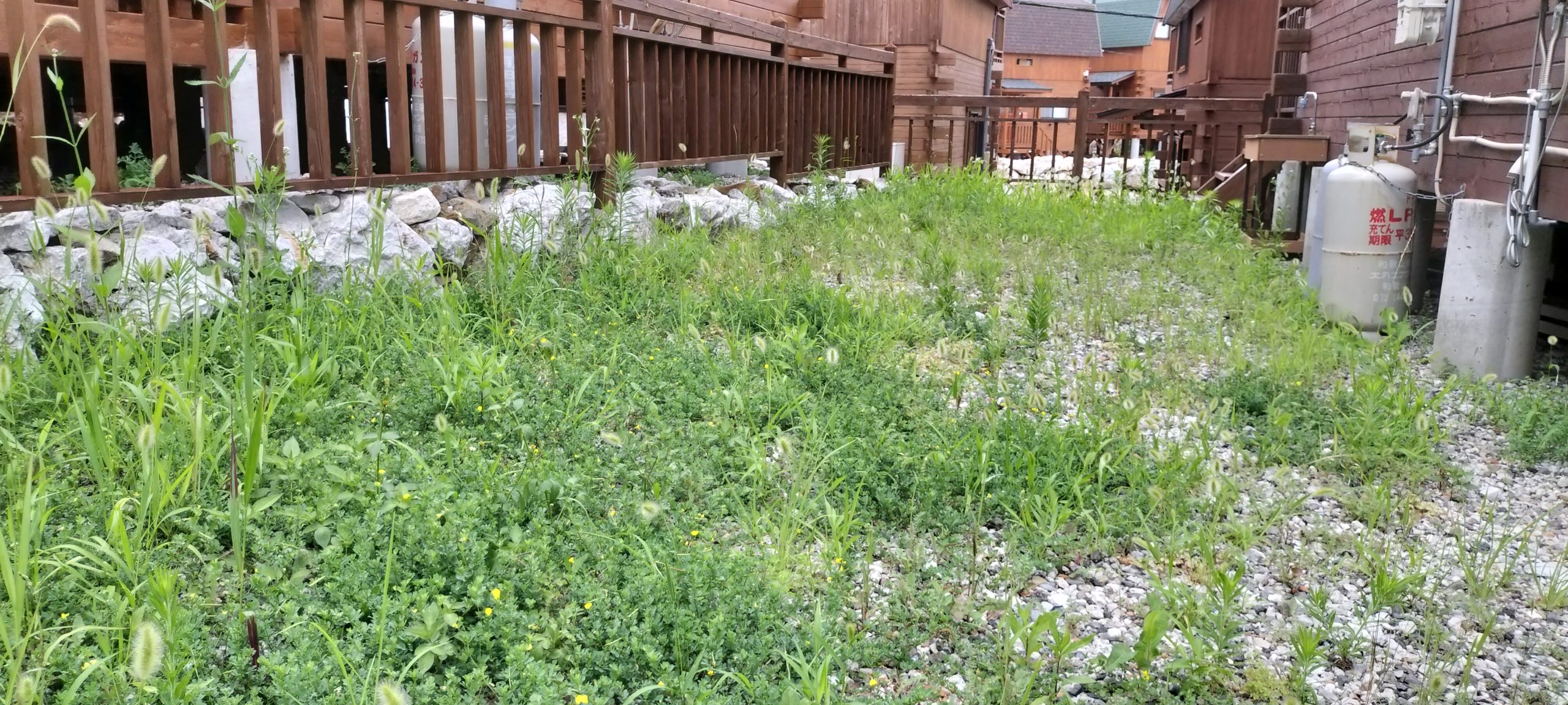 長期間放置されていたため、庭全体に雑草がびっしり💦 特に、エノコログサ(猫じゃらし)やススキ、クローバーなどが繁茂 していました。